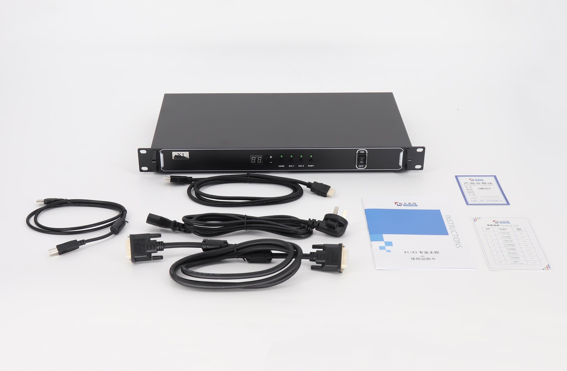 X1 is a professional LED display controller. It possesses powerful video signal receiving and processing capacities, and supports HD digital signals, in which the maximum input resolution is 1920×1200 pixels. It supports HD digital ports including HDMI and DVI, and seamless switching between signals. It supports arbitrary scaling and cropping of video sources.